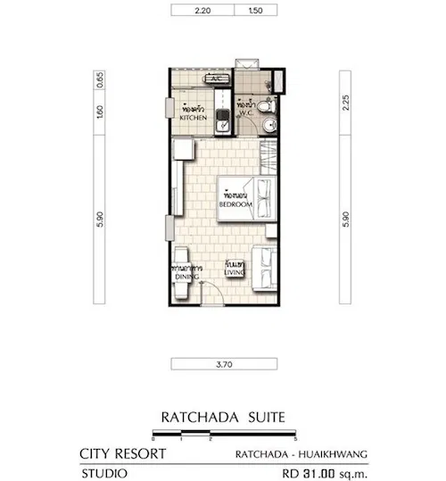 Supalai City Resort รัชดา-ห้วยขวาง สตูดิโอ 1 ห้องน้ำ ขนาด 31.05 ตร.ม. ชั้น 2 อาคาร 3 ทิศใต้ลมดี ห้องสวยทำเลดี เฟอร์นิเจอร์ครบ+เครื่องใช้ไฟฟ้า ราคาดีมาก!! ขายเพียง 1,650,000 บ.เท่านั้น!!