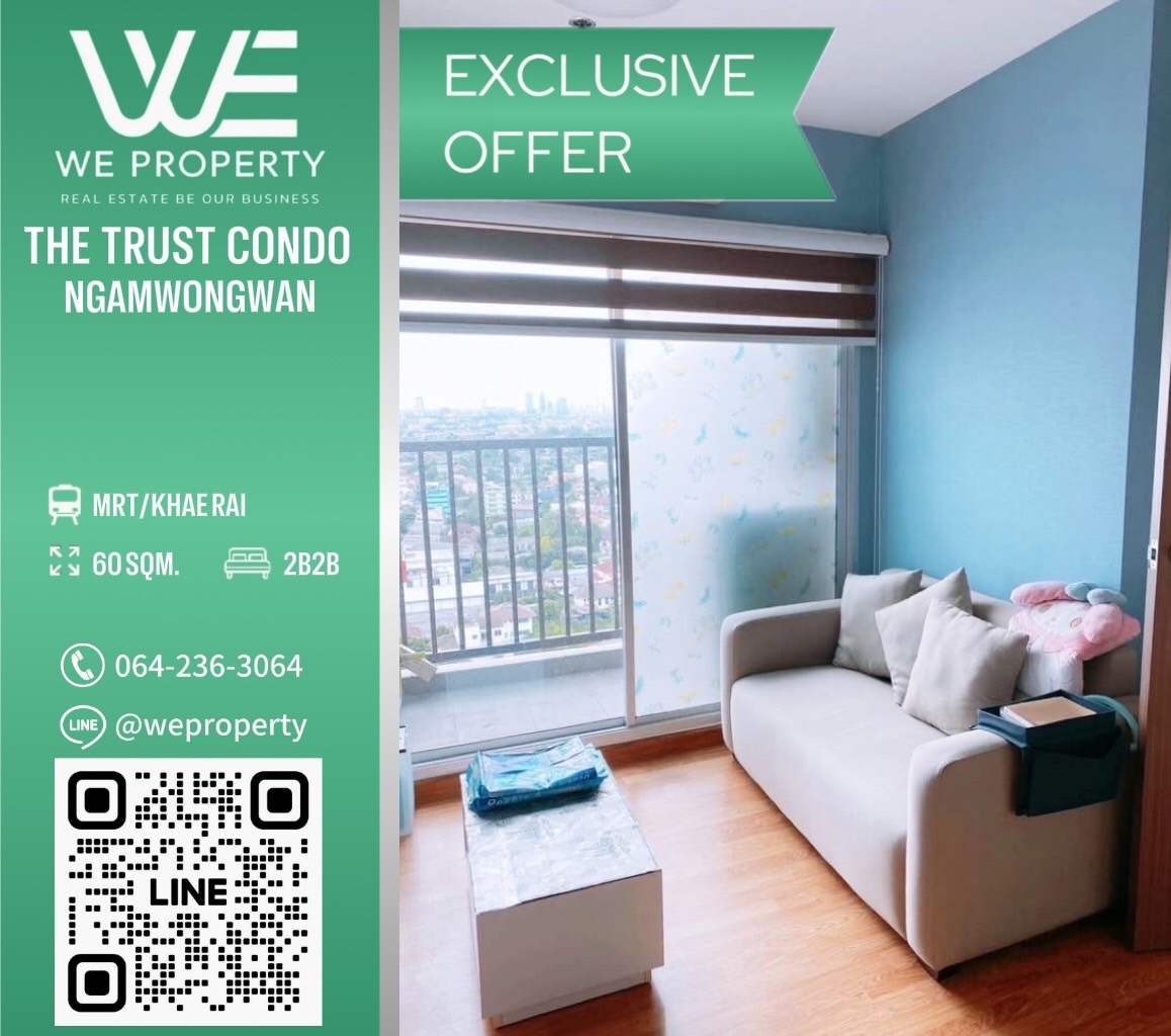 The Trust Condo งามวงศ์วาน 1ห้องนอน 1ห้องน้ำ ขนาด 30 ตรม. ชั้น 17 ทิศเหนือไม่ร้อน เฟอร์นิเจอร์และเครื่องใช้ไฟฟ้าครบ ขายขาดทุน ราคานี้มีห้องเดียวใครได้ไปคุ้มมาก ขาย 1,390,000 บ. เท่านั้น